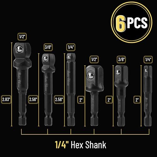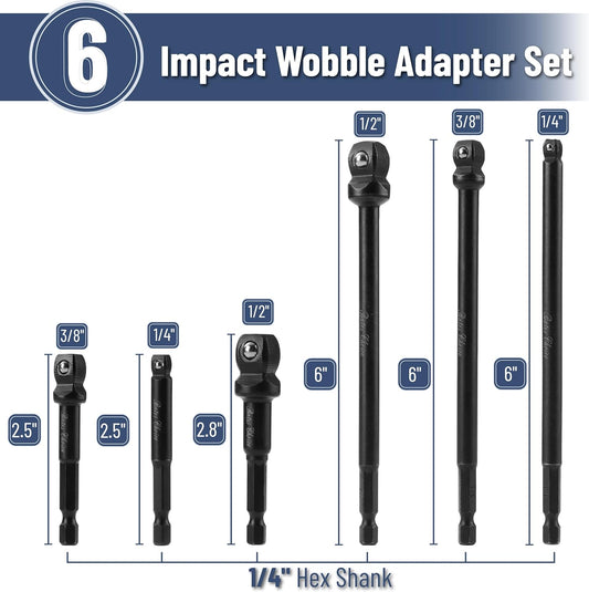 Bates- Impact Wobble Adapter Set, 6 pcs, 6", 2-3/4" & 2-1/2"-Long, 1/4" Drive Hex Shank, 1/4" 3/8" & 1/2", Wobble Extension Set