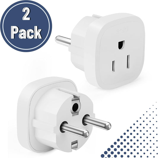 Bates- European Travel Plug Adapter, 2 pcs, Type E/F, White European Plug Adapter, US to Europe Plug Adapter, Adapter for Europe Plug