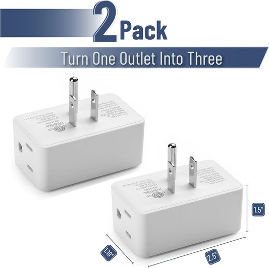 Bates- Multi Plug Outlet Extender, 2 Pack, White, 3 Way Plug Adapter