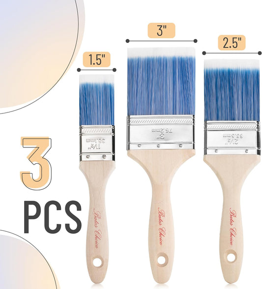 Bates- Paint Brushes for Walls, 3 Pack, 1.5”, 2.5” & 3”, Treated Wood Handle