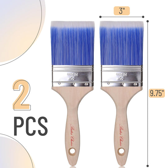 Bates- Paint Brushes, 3-Inch, 2 Pack, Treated Wood Handle, Paint Brushes for Walls