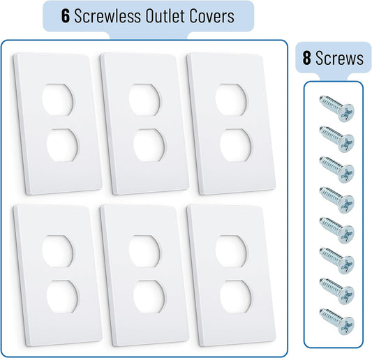 Bates- Screwless Duplex Wall Plate, 6 Pack, White Outlet Covers Wall Plate