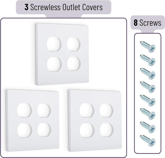 Bates- Screwless Double Duplex Outlet Covers, 3 Pack, White
