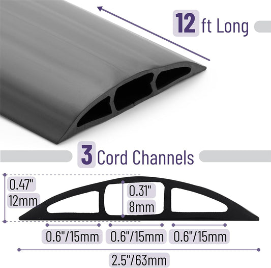 Bates- Floor Cord Cover, 12ft, Black, Cable Cover, Cord Cover Floor Cable Cover