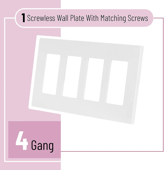 Bates Choice- Screwless Decorator Wall Plates, 4 Gang Wall Plate, Decorator Wall Plate, Outlet Covers, Wall Plates