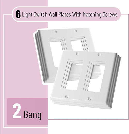 Bates- Double Light Switch Plate, 2 Gang Wall Plate, 6 Pack, Double Outlet Cover