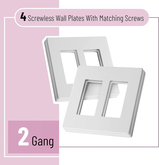 Bates- Screwless Decorator Wall Plates, Two Gang Switch Plate Covers, 4 Pack, Screwless Wall Plates 2 Gang
