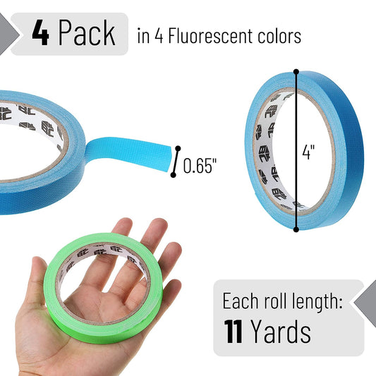 Bates- Colored Gaffers Tape, 4 Pack, Neon Colors, 0.65 Inch x 11 Yards, Gaffers Tape, Gaff Tape, Spike Tape