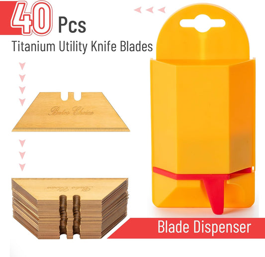 Bates- Utility Knife Blade with Dispenser, 40 Pack, Titanium Fully Plated, Box Cutter Blades Refills