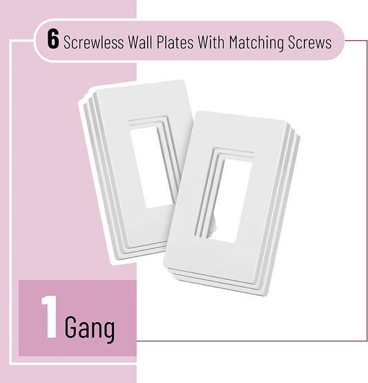 Bates- Screwless Decorator Wall Plates, Switch Plate Covers, 6 Pack, Screwless Wall Plates 1 Gang