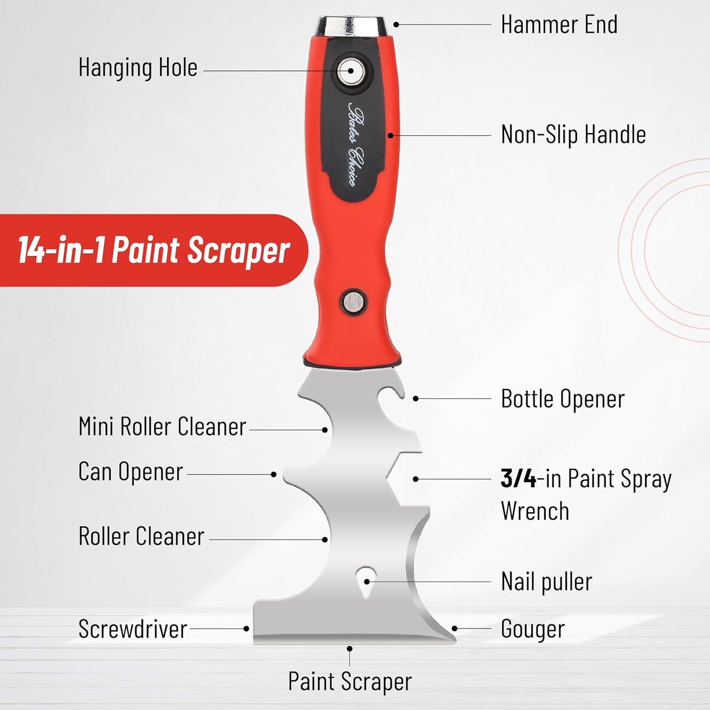 Among the knives is a unique multi-purpose tool that includes a serrated edge for cutting drywall tape and a straight edge for precise scraping, making it a versatile addition to any toolkit.